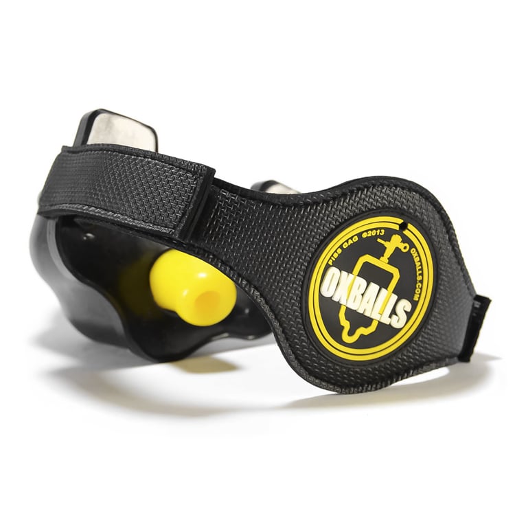The yellow piss gag inserts are firm flexible silicone. URINAL comes with a bent tube insert but it’s removable so you can switch to out for one of the 3 other available gags.